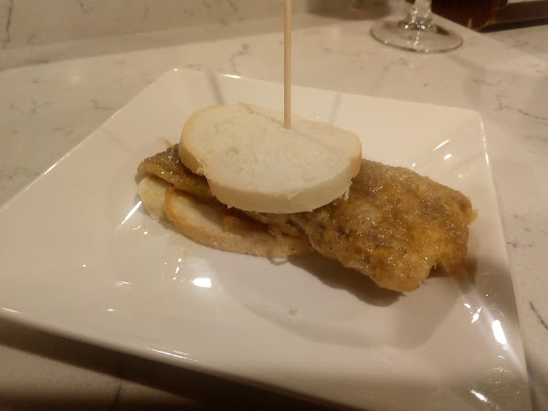 Una de mis primeras paradas fue el mítico bar El Perchas, en las anteriores ocasiones no pude entrar y esta vez no me resistí a probar su famosa oreja. Y la verdad tengo que reconocer que después de probarla me di cuenta de por qué tenía esa fama, ya que estaba fabulosa. Tienen dos clases de oreja, rebozada y picante, yo probé la primera y estaba espectacular, blandita, con el rebozado justo y para nada aceitosa ni con sabor a fritanga.