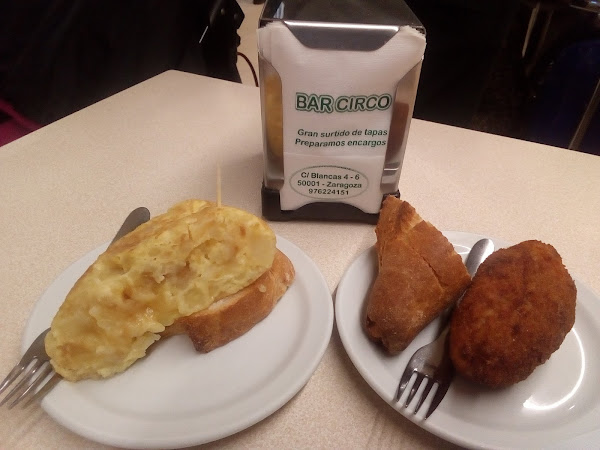 Sin embargo, si lo que buscáis en una deliciosa tortilla de patata os recomiendo encarecidamente que visitéis el establecimiento “El Circo”. Se encuentra en la calle Jerónimo Blancas, cerca del Coso y la verdad es que tienen una tortilla deliciosa, fue lo que más me gusto de un bar que nos devuelve a tiempos pasados con tapas de toda la vida. Si vais también me gusto mucho el pimiento relleno de bacalao un pelín picante. Aunque si sois amantes de los pimientos, muy cerca de este establecimiento se encuentra el bar “Erzo”, donde para mi gusto están mucho mejor que los anteriores y además tienes infinidad de montaditos y tapas donde elegir desde tradicionales a modernas. Es un bar un poco pequeño, pero si conseguís sitio seguro que os quedáis un buen rato, ya que sus barras recuerdas a las del País Vasco y la verdad es que sus pinchos están de muerte.