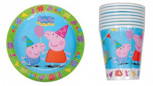Mira que me gustan Peppa Pig y su familia. Y estos platos y vasos de Martín se va de fiesta no podrían ser más bonitos: