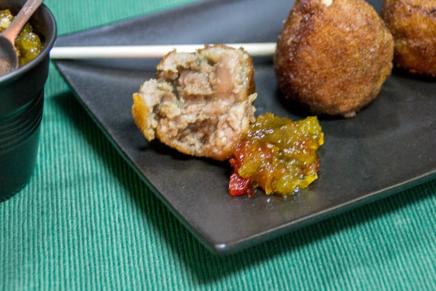 Pasado ese tiempo sacamos de la nevera y hacemos bolas medianas, un poco más grandes que albóndigas.