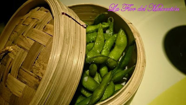 Oh! Oh! Esto que es lo que es????? Me sentí analfabeta total! Que no, que no listillos! no son judías!!! Son judías de soja. Y cuando te metes la primera a la boca (con palillos, porque cubiertos no había) resulta que la vaina está dura. ??????? Sólo se come lo de dentro??? Las miradas entre los dos eran para grabarlas. Mi marido decía que igual era decoración. DECORACIÓN???? pero si entra en el menú!!!!! jajaja. Entonces llegaron más platos y empezamos a degustarlos. Unos langostinos en tempura, estos uramakis de tártar de salmón y los de al lado de anguila ahumada...
