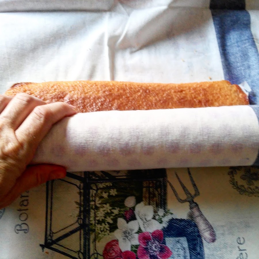 Esperamos un par de minutos y colocamos con cuidado nuestro bizcocho decorado sobre un trapo limpio ( of course ) y algo húmedo y enrollamos sobre el trapo.