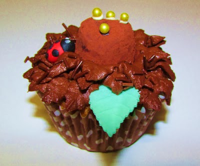 Y es que la verdad que los cupcakes quedan muy chulos decorados como flores. Aquí os enseño una flor a la que no le falta detalle, es de chocolate, con una trufa en el centro, hoja de oblea de pan y hasta una pequeña mariquita posada. Un pequeño trabajo de chinos que mereció la pena. En el blog Irihouse podéis encontrar otras recetas muy originales.