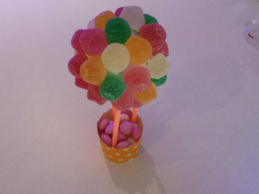 Hoy lo hemos creado con gominolas, redondas, pero lo mismo lo podemos hacer con otro tipo de gominola, como caramelos blandos, nubes o esponjitas…