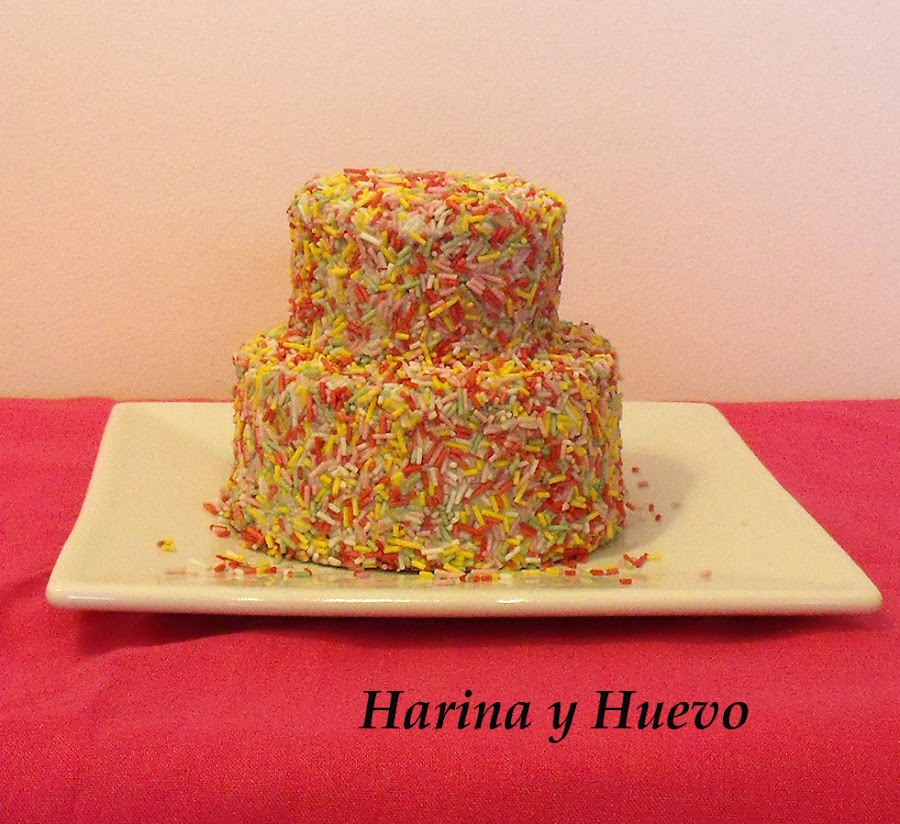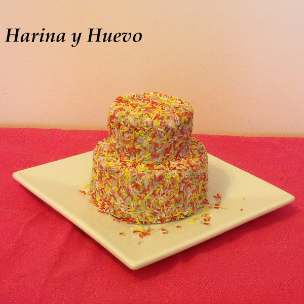 En mi caso he hecho una tarta pequeña para una o dos personas ya que estoy sola en casa (mi novio se ha ido de despedida de soltero, ya van cinco días, empiezo a pensar que en realidad me ha plantado y no va a volver jeje). Estas mini tartas se están poniendo muy de moda para las bodas, aunque reconozco que la decoración no es la típica de una boda si eres una novia atrevida que le gusta el color y tu boda es de día en el campo podrías poner una igual, pero más grande.