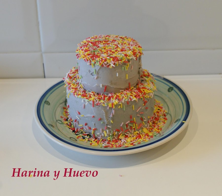 Ya solo queda meterla en el frigo para que se endurezca el buttercream antes de servir y listo. ¡¡¡Espero que os guste esta idea y que la uséis con vuestros niños!!!!ah! si hacéis una tarta grande para rematar la decoración poner unas guirnaldas y os quedará genial.