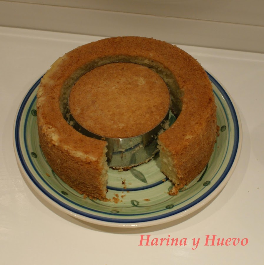 Hacemos un bizcocho más grande y una vez listo lo "cortamos" con el aro de emplatar. Ventajas: si tenemos que hacer muchos hacemos un bizcocho muuuuy grande rectangular y luego cortamos muchos pequeños así solo hay que hornear una vez. Inconvenientes: sobran retales de bizcochos, aunque pueden ser usados para cakepops o pastelitos de chocolate.