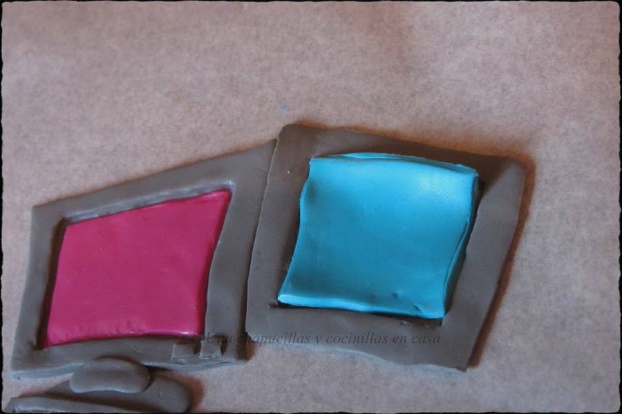 Lo que hice fue trabajar sobre papel de horno con el contorno del marco dibujado en el para crear las figuras acordes y con el tamaño que quería y donde las quería ir colocando.
