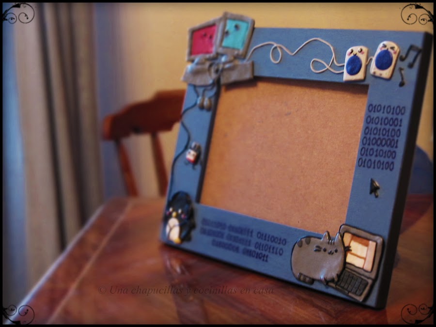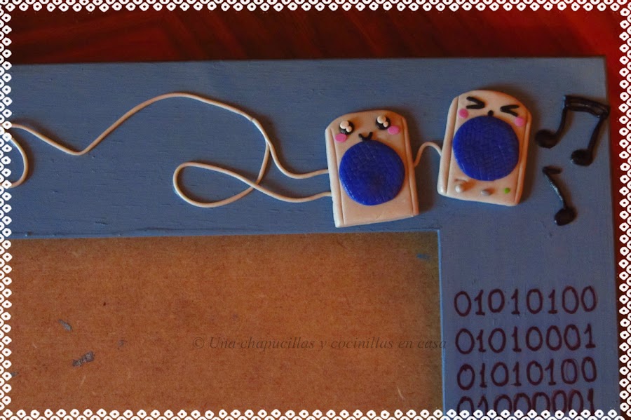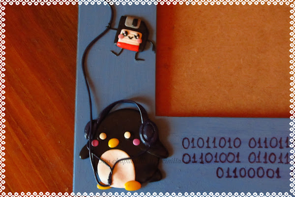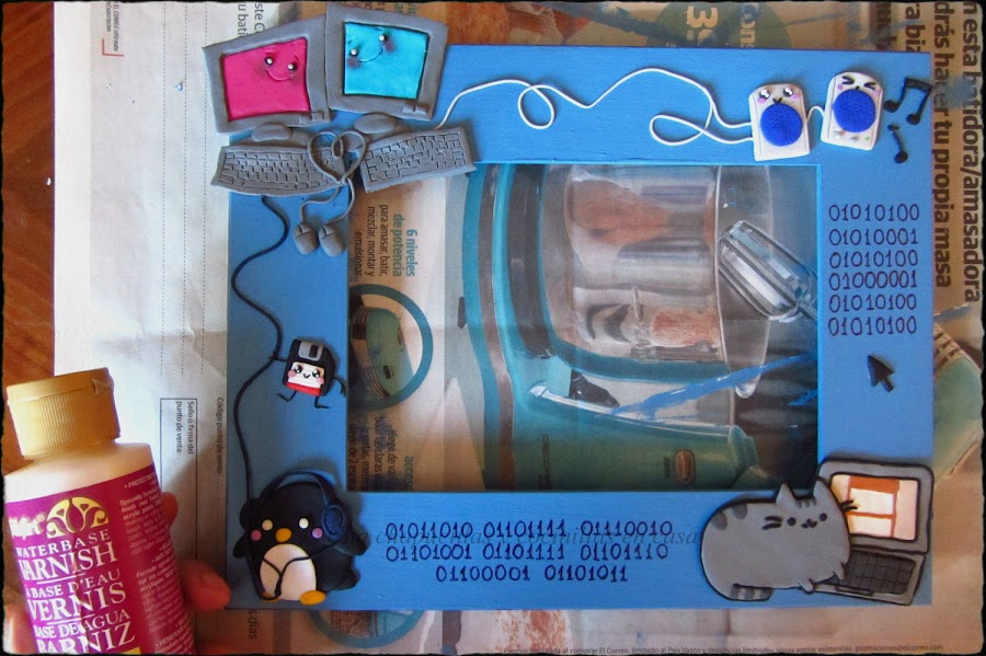 Yo antes de barnizar, adorné con un rotulador escribiendo ceros y unos.