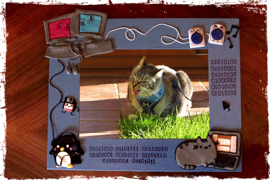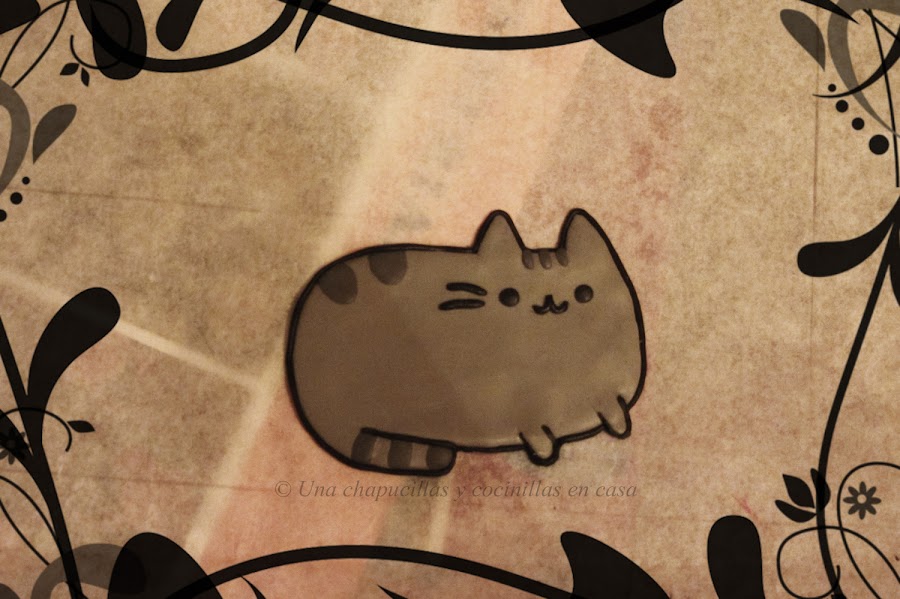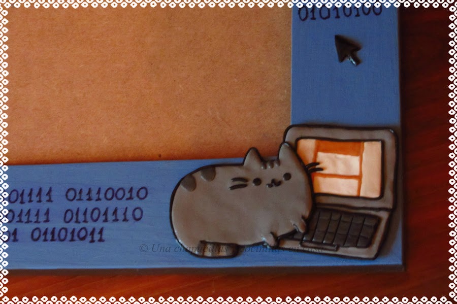 Bueno y para la esquina inferior derecha, se me ocurrió que podía poner a Pusheen con su portátil escribiendo una entrada en blogger :-D
