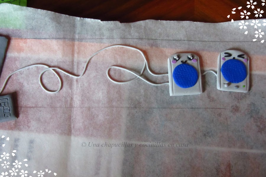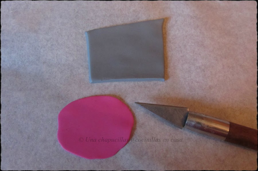 Con fimo gris, azul y rosa fui dándoles forma, ahí os van unas fotos del proceso: