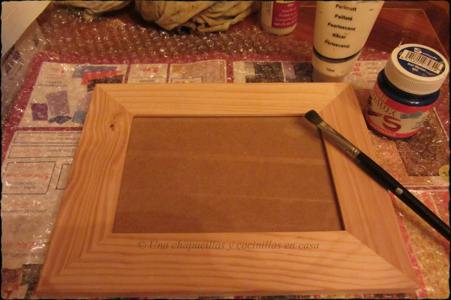 El canto del marco lo pinté con pintura acrílica gris metalizado.