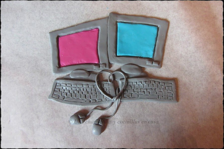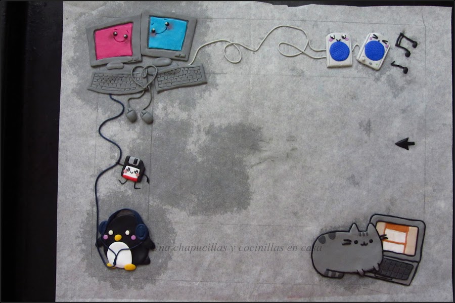 La temática que elegí fue como habéis podido ver mas arriba en las fotos la informática y comencé con dos ordenadores que decidí ponerlos en la esquina superior izquierda.