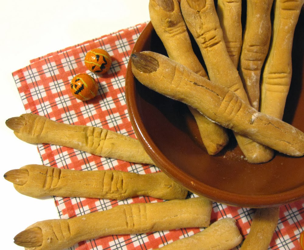 Esta noche vamos a pasar miedo.. muuucho miedo.. Un año más, llegó la temida noche de Halloween donde los espíritus andurrean a sus anchas haciendo de las suyas. Pero no nos amedrentemos, éso es lo peor que podemos hacer. Así que nada mejor que preparar una merienda o cena divertida para ahuyentar a los fantasmillas de perversas intenciones.. Yo este año me he atrevido con los famosísimos DEDOS DE BRUJA, pero en su versión "salada" que veréis que más fáciles no pueden ser.