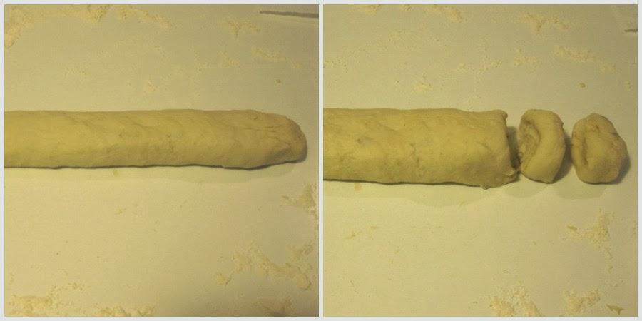 5. Pasado el tiempo y hartos ya de amasar, dale forma alargada a la bola de masa. Después, con un cuchillo corta rebanadas que tengan un tamaño similar para que todos los dedos salgan más o menos iguales.