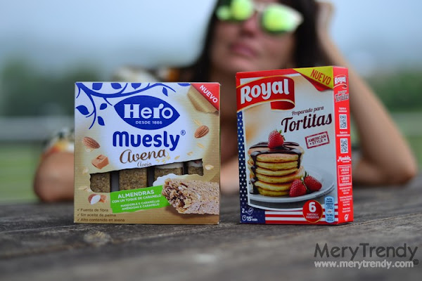 Barritas HERO MUESLY AVENA, preparado para tortitas ROYAL, refrescos GREEN COLA, pistachos WONDERFUL, botellines THE GOOD CIDER y barquitas mexicanas OLD EL PASO.