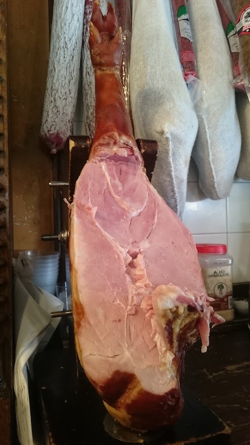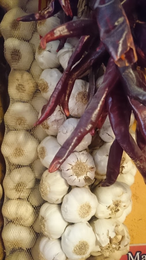 Lacón cortado a cuchillo frente a tus narices / Ristra de ajos y guindillas secas para aromatizar tus sentidos