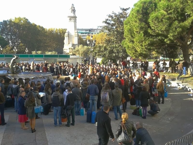 Casi no pude dormir y sin darme cuenta, ya era lunes. Me puse el vestido que me había comprado para la ocasión, me maquillé, me puse mis amuletos de la suerte y venga a Plaza de España a las 9:30 de la mañana.