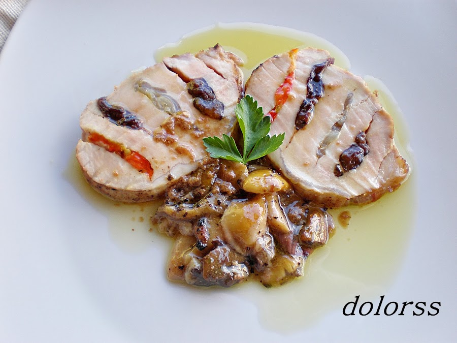 Nuestra amiga DOLORSS nos propone en su blog este delicioso lomo en abanico de colores.