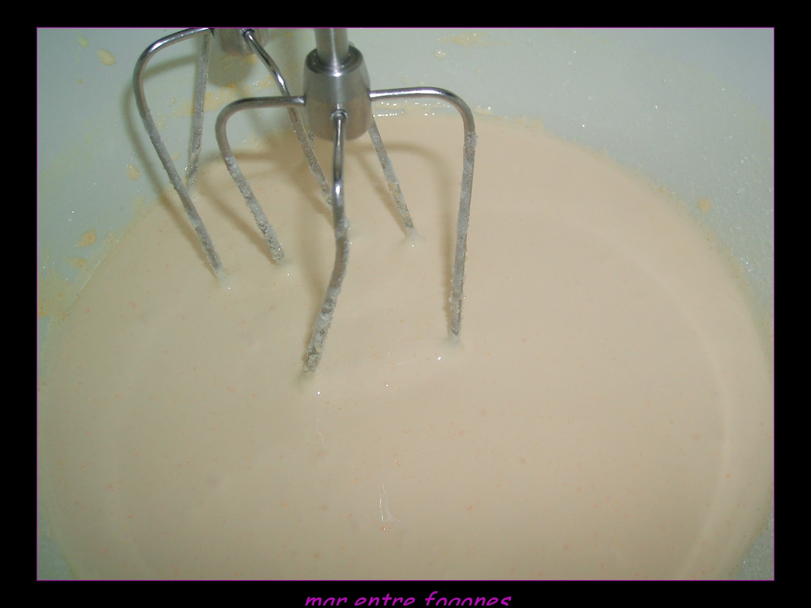 Montar la nata (crema de leche) y añadirle un poco de azúcar glass al gusto.