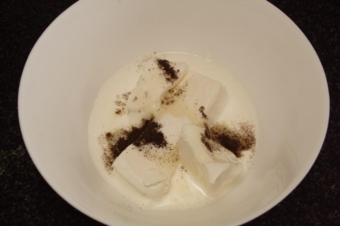 Ponemos el brick de nata (crema de leche) en un bol grande con hielo y lo dejamos en la nevera una hora antes de empezar con la receta.