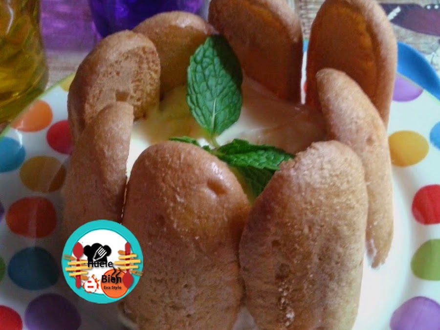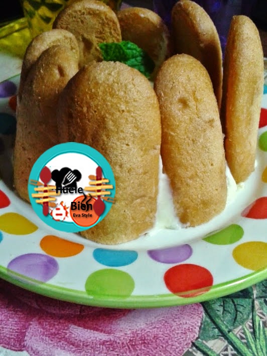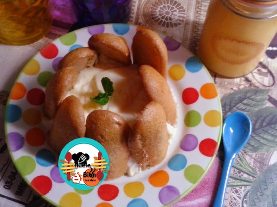 Tenía ya la crema de limón preparada, simplemente la mezcla con nata montada (crema de leche) y hice una corona de bizcochos de soletillas. (Crema de limón).