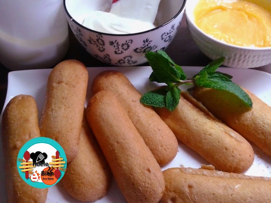 1.- Con la varilla eléctrica montamos la nata (crema de leche) con el azúcar, la mezclamos bien con la crema de limón. Cortamos las puntas de los bizcochos. Hacemos una corona sobre ellos en el centro de un plato de postre. Rellenamos el centro con la preparación anterior. Decoramos con una hoja de hierbabuena o menta. Dejamos reposar 20 minutos y servimos fría.