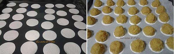 Preparamos las blondas sobre una bandeja de horno cubierta con papel sulfurizado, unas al lado de otras. Ponemos la masa preparada en una manga pastelera y vamos formando cada una de las delicias procurando que mas o menos queden todas del mismo tamaño.