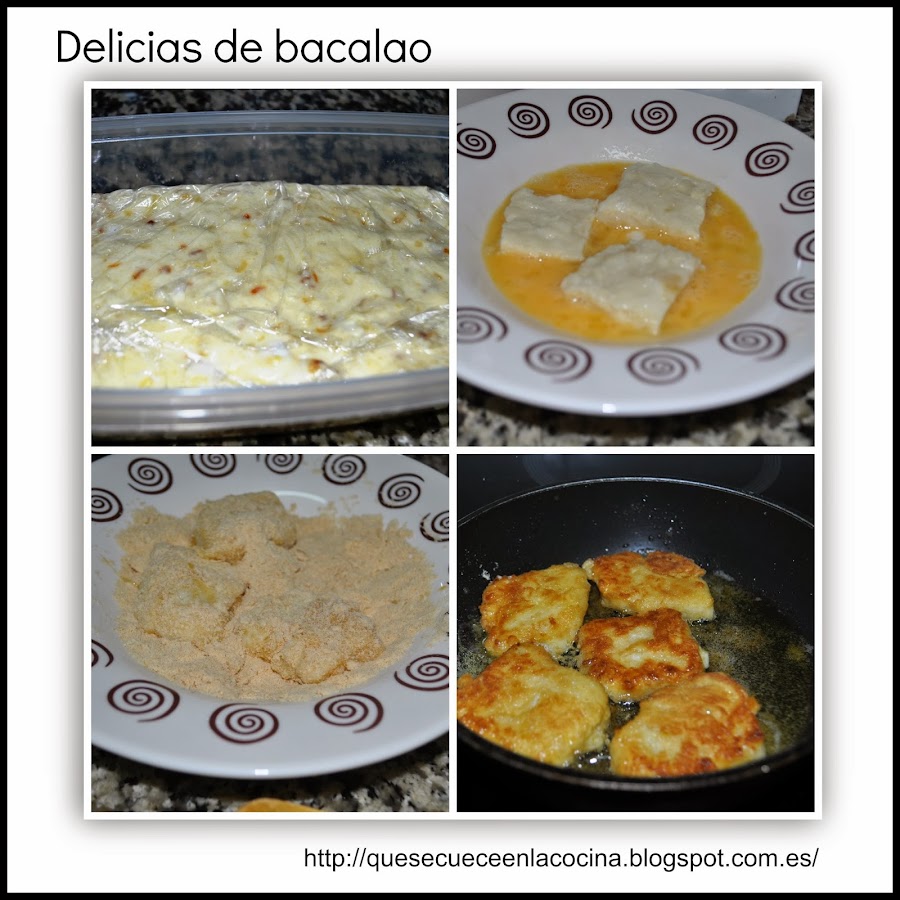 En un tuper rectangular, ponemos un papel film y echamos la masa encima. Cubrimos con el film y dejamos enfriar, mejor de un día para otro. Al día siguiente, sacamos la masa con el film sobre una tabla y cortamos cuadrados que pasamos por huevo y pan rallado y freímos en aceite.