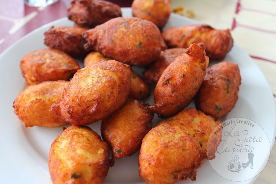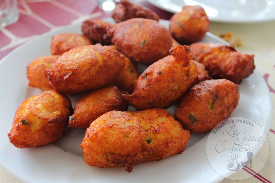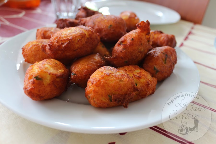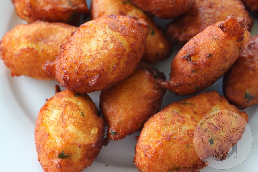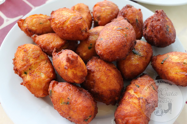 Ponemos una sartén con abundante aceite a calentar, cuando esté bien caliente vamos cogiendo porciones de masa y le damos forma alargada ayudándonos de dos cucharas, dejamos que se doren por un lado antes de darles la vuelta para que se hagan por el otro.