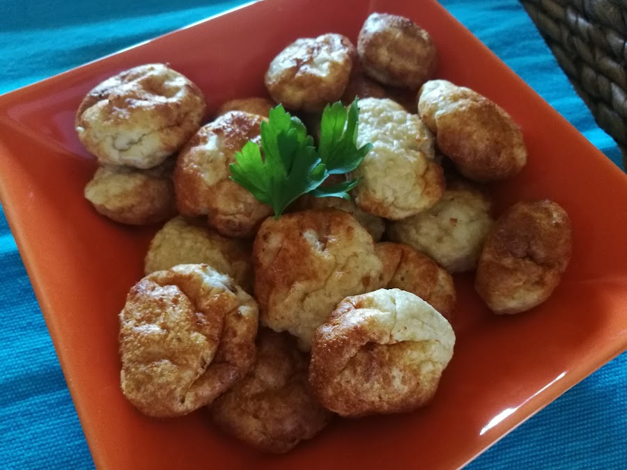 - Hacer bolitas y colocar en la bandeja de la freidora, sin nada de aceite