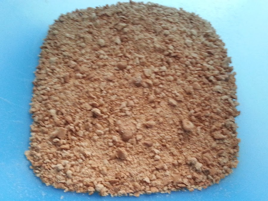 1. - En primer lugar trituramos las galletas con las manos, bien limpias por favor, y luego con una cuchara terminamos de triturarlas.