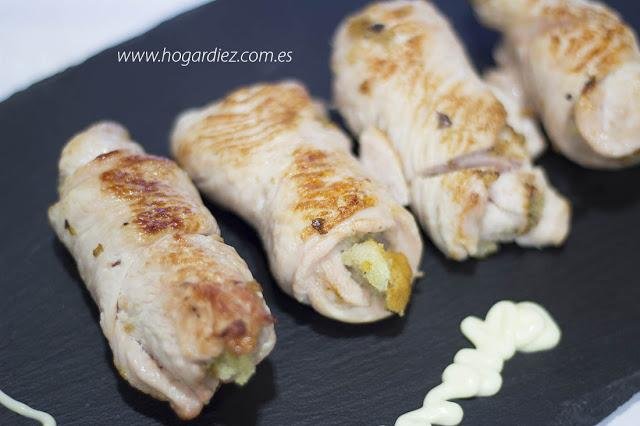Lomo de cerdo relleno de queso, manzana y pasas.