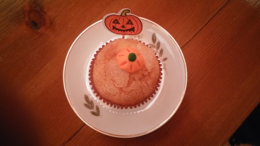 Además añadí al pedido pasta de azúcar para hacer las calabazas que veis en las fotos. Lógicamente se pueden comer, pero las puse nada más por decoración (volviendo al controvertido tema del azúcar). Teñí la masa con colorantes alimentarios Wilton que tenía en casa de otras veces y con un palillo le fui dando forma de calabacita.