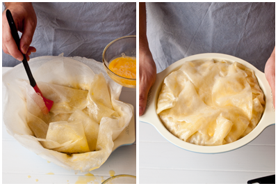- Repetimos el paso hasta cubrir con seis láminas de pasta brick.
