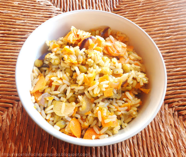 Faltaba poco para la cena y vi que no tenía mucho en la heladera: Un par de zanahorias y cebollas, ajo (que nunca falta), alguna latita de arvejas, un poco de repollo y claro... ARROZ!!