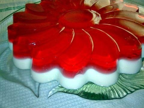 Este vistoso postre esta hecho únicamente de gelatinas y está buenísimo y es una de las muchas recetas que encontraréis en mi blog Cocinera y madre; para prepararlo vamos hacer varias gelatinas de colores, yo he utilizado sobres de preparado de gelatina de fresa y 2 de limón y a uno de ellos lo tintamos con colorante alimentario verde, según nos indica el fabricante, dejamos enfriar y lo cortamos en cuadrados. Por otro lado ponemos a hidratar hojas de gelatina en agua fría, una vez hidratadas las disolvemos en agua caliente y la mezclamos con la leche condensada. En un molde engrasado con aceite echamos las gelatinas de colores cortadas y mezcladas, y cuando la gelatina de leche ya esté fría y empiece a coger textura se la añadimos al molde. Dejamos enfriar como mínimo 2 horas. Desmoldamos y ummm!! a comer!