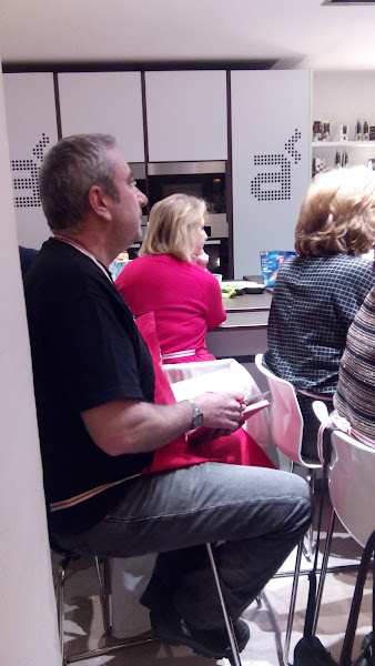 Los cursos y otras actividades se hacen en colaboración con la librería A Punto en la calle Hortaleza, 64 de Madrid. En ella conocimos a la Chef María Ayora, nutricionista y cocinera. María es el aire fresco de Cádiz y pura energía en la cocina, con ella y con su ayudante Javier aprendimos a guisar Arroz con Bacalao y Arroz con Morcilla y Habas. Ummmm......aún tengo el sabor a mar y montañas de estos platos que luego degustamos entre los asistentes en un ambiente festivo y de aperitivo entre amigos.