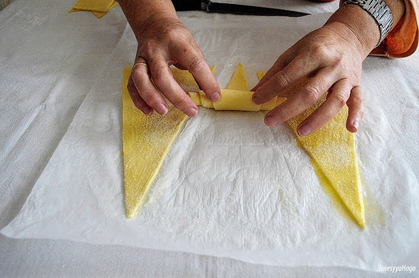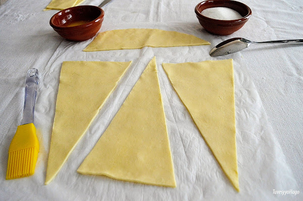 6. Dale forma de cuernecillos y colócalos sobre una fuente de horno cubierta con papel de horno.