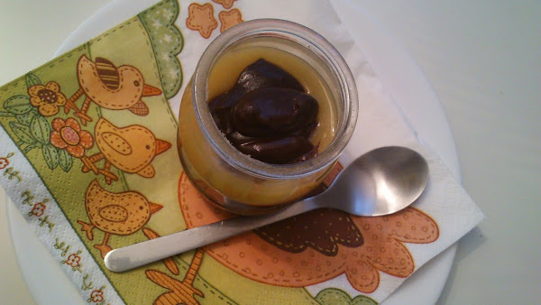 Batir todos los ingredientes para que no queden grumos. Meterlos en un bol apto para el microondas y poner a 800 w durante 1 minuto. Remover bien para que no queden grumos y volver a meter otro minutos y medio más. Removemos y si vemos que queda demasiado líquida meter un poco más de tiempo. Dejar enfriar.