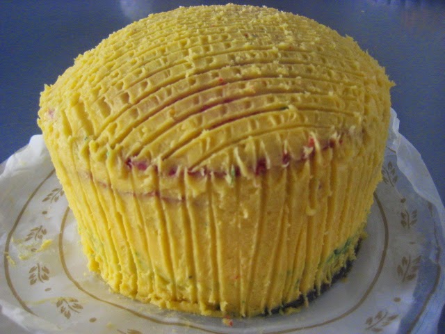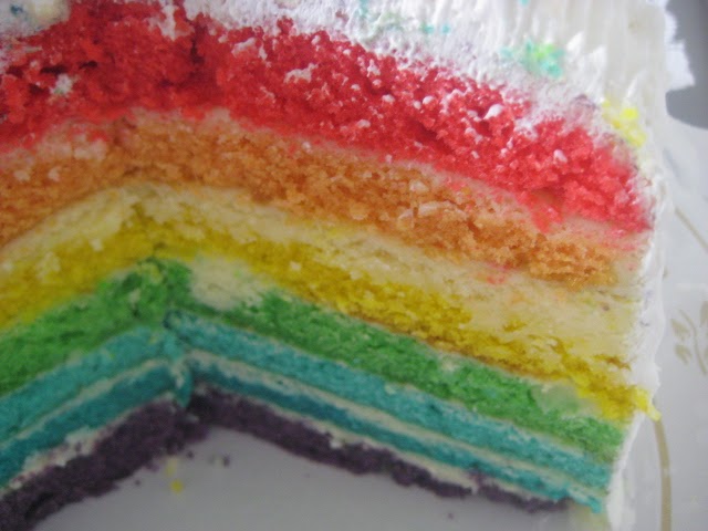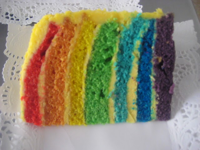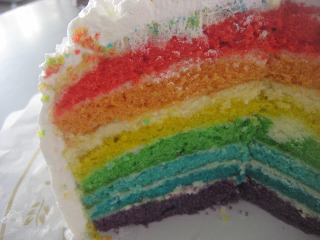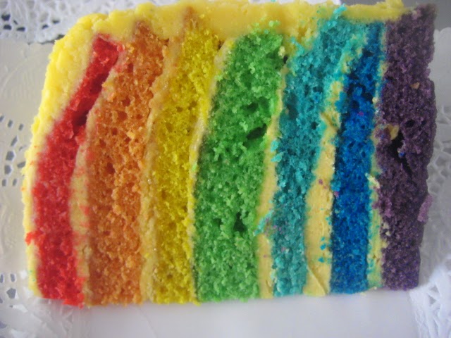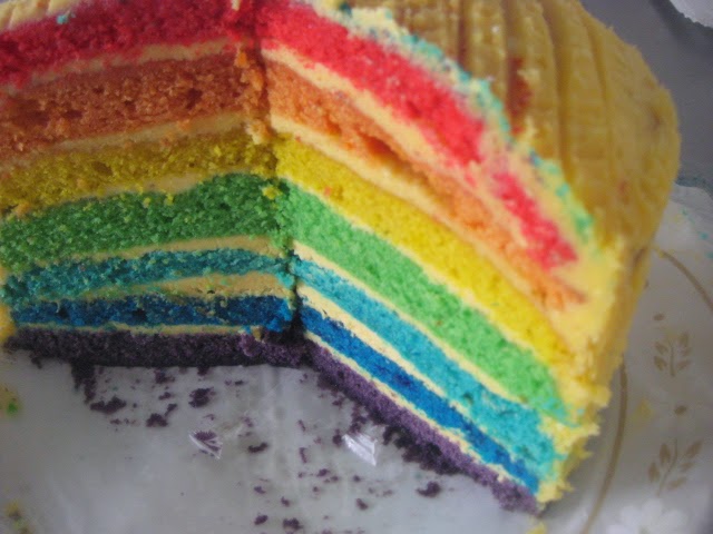Para este mes de julio Daring Bakers nos proponer el reto de un bizcocho sorpresa o sorprendente al abrirlo, Yo he hecho bizcocho un arcoíris que me ha quedado con más colores y esa es lo bonito y lo sorprendente: por otra parte he rellenado y cubierto de nata montada (crema de leche) porque es más ligera que el frosting o crema de queso y luego como tenía dos bizcochos he montado un rainbow cake con crema de naranja. Dulces y coloristas sorpresas para participar en el desafío de este mes