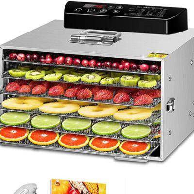 Con un diseño similar a un horno, este deshidratador de alimentos cuenta también con seis rejillas fáciles de extraer para su limpieza. Las cuales, al igual que el resto del electrodoméstico, están fabricadas con acero inoxidable para una mayor durabilidad.