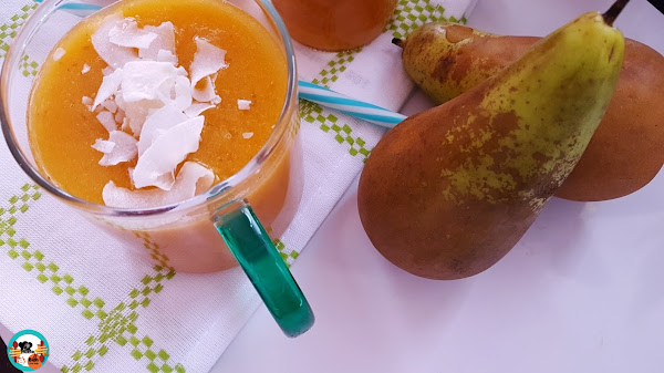 1.- Lavar bien la fruta. Cortar la pera en trozos, quitar el corazón y las semillas. Pelar la calabaza, quitarle las hebras y las semillas.