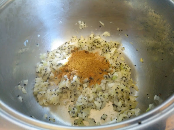 Ponemos en una cazuela aceite a calentar, cuando esté, echamos la cucharadina de café de mostaza y la de semillas de cebolla negra.