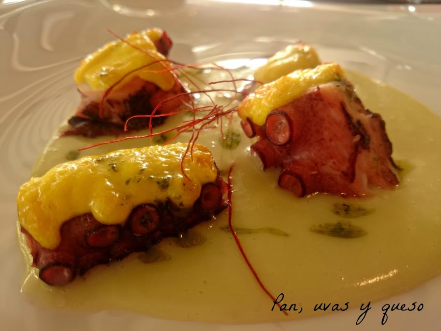 Pulpo roquero gratinado en all i oli suave con parmentier de wasabi