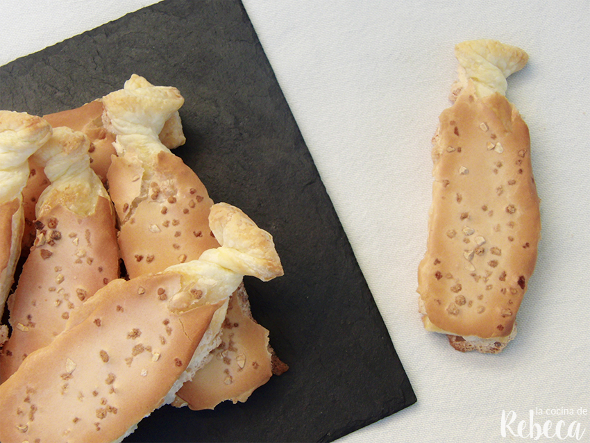 Rebeca, de La cocina de Rebeca, ha preparado unas ricas Corbatas de la Unquera, unas tiras de hojaldre crujiente, cubiertas de glasa y granillo de almendra. Dice que volverá a hacerlas que son tan fáciles y ricas que merece la pena.