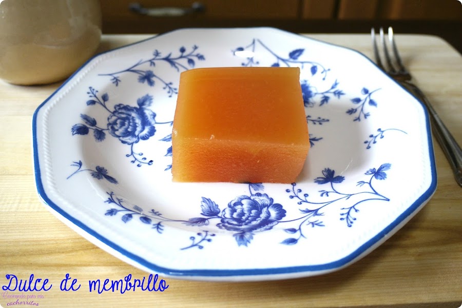 Verónica, de Cocinando para mis cachorritos nos cuenta: "Me he ido por lo facilito y he preparado un dulce de membrillo de los de chuparse los dedos. Yo no lo he catado porque no me gusta, pero a mis padres, mis suegros, mis tíos y en general a todos los miembros de mi familia de la generación anterior les ha encantado. Está hecho con membrillos ecológicos que me han regalado del lugar de trabajo de mi primo, un centro de educación ambiental que se llama El campillo."