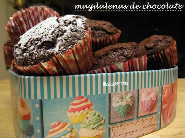 Eva, del blog Fresa y Canela, quiere endulzarnos con unas ricas Magdalenas de chocolate, de esas que nos acompañan en el desayuno o la merienda y que dejan un espectacular aroma en casa después de hornearlas.