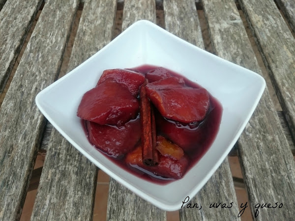 Pan, uvas y queso nos prepara unos ricos y tradicionales Melocotones al vino, típicos de Aragón, que harán las delicias de los más golosos.