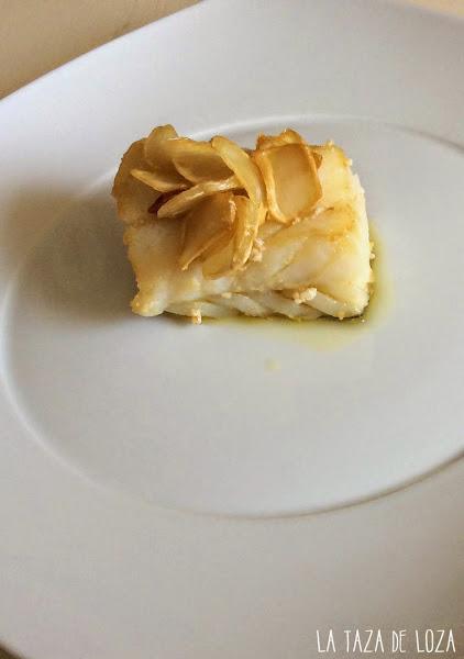 Como compré un trozo muy grande de bacalao y no era plan dejarlo olvidado, ya que el precio no es demasiado económico, (el kilo de estos lomos buenos están en el mercado a casi 30 euros el kilo). Por este motivo hice este buen trozo en una sartén con aceite de oliva y unos ajos laminados... para acompañar nuestro modesto y sencillo "Atascaburras"